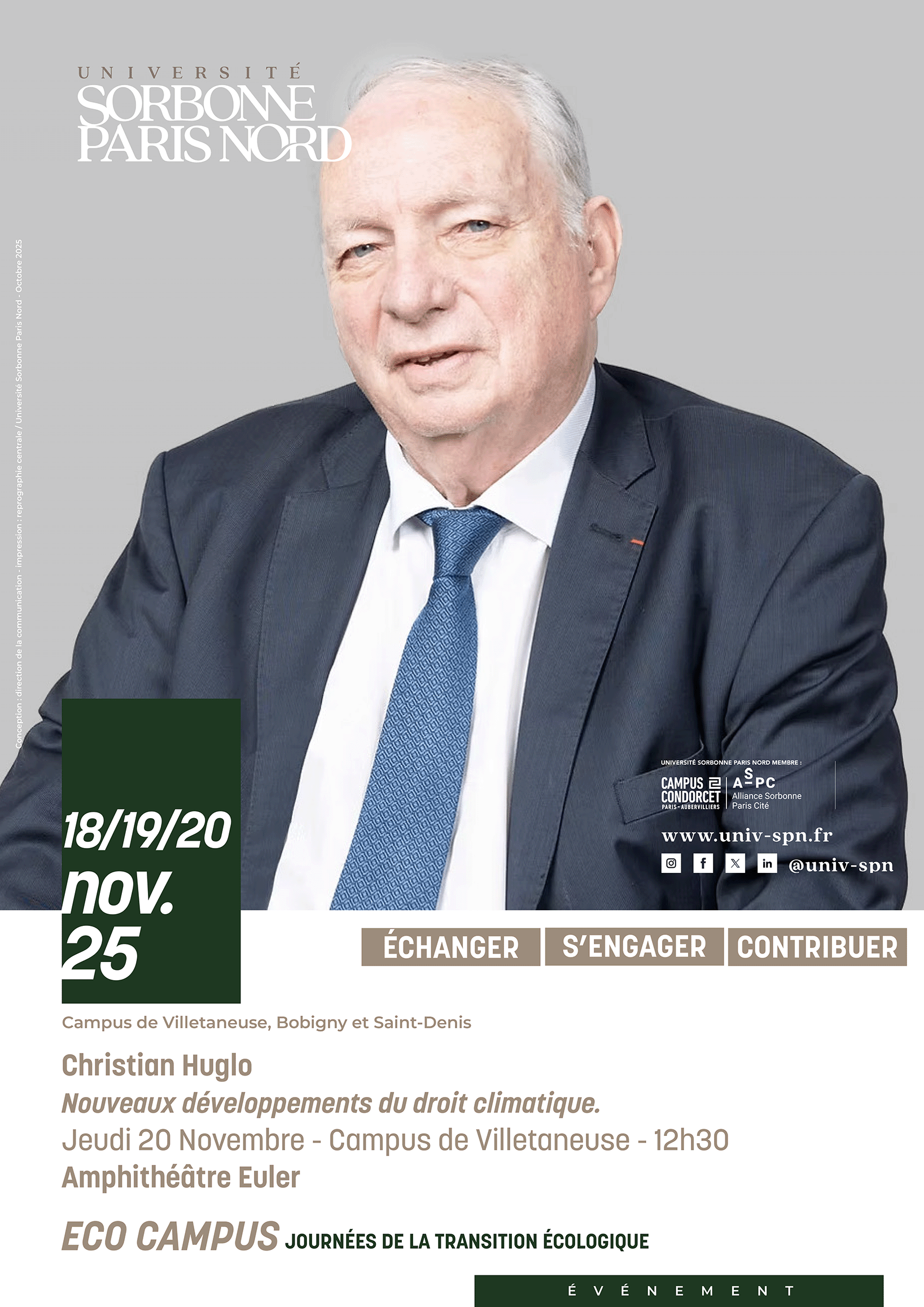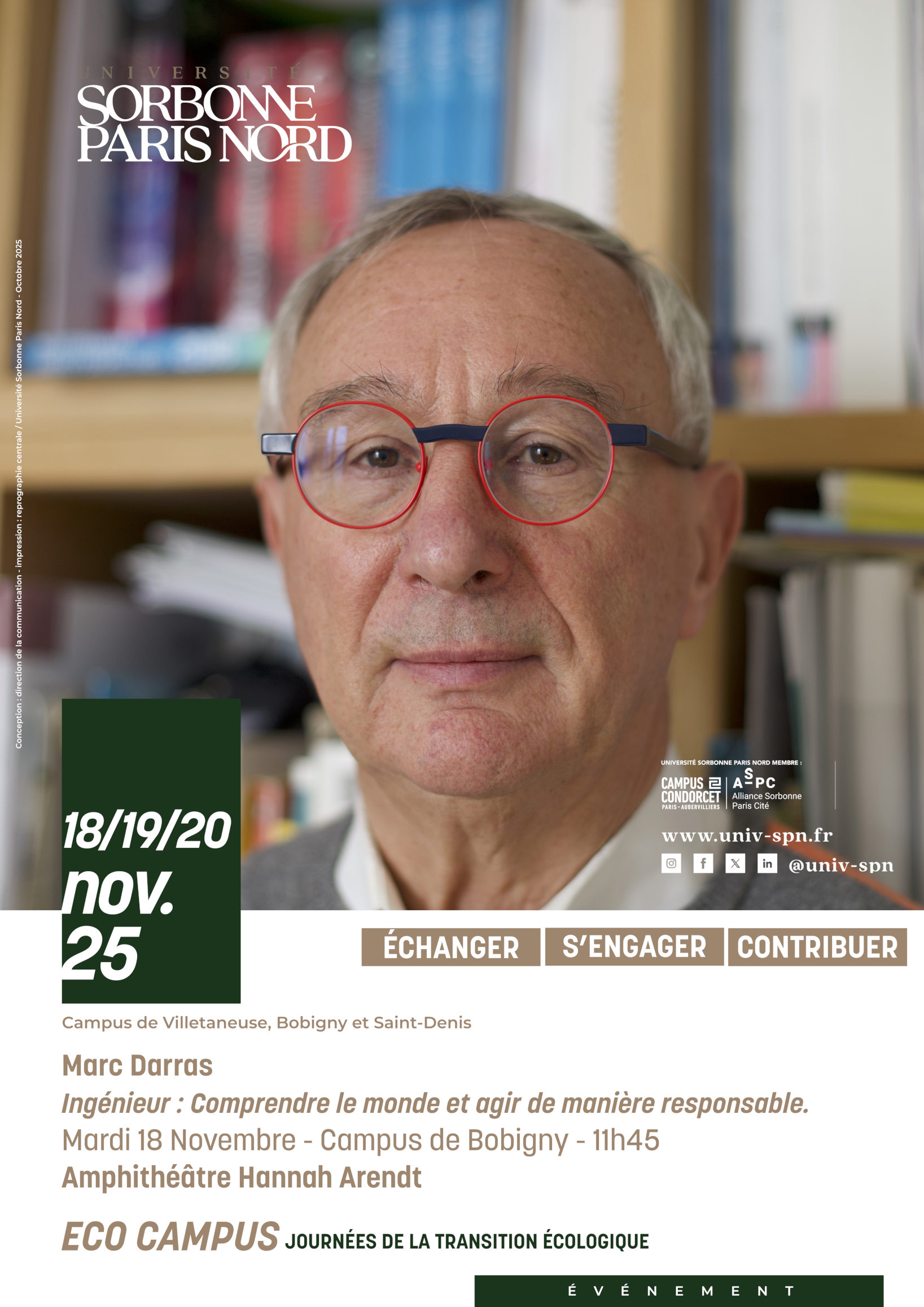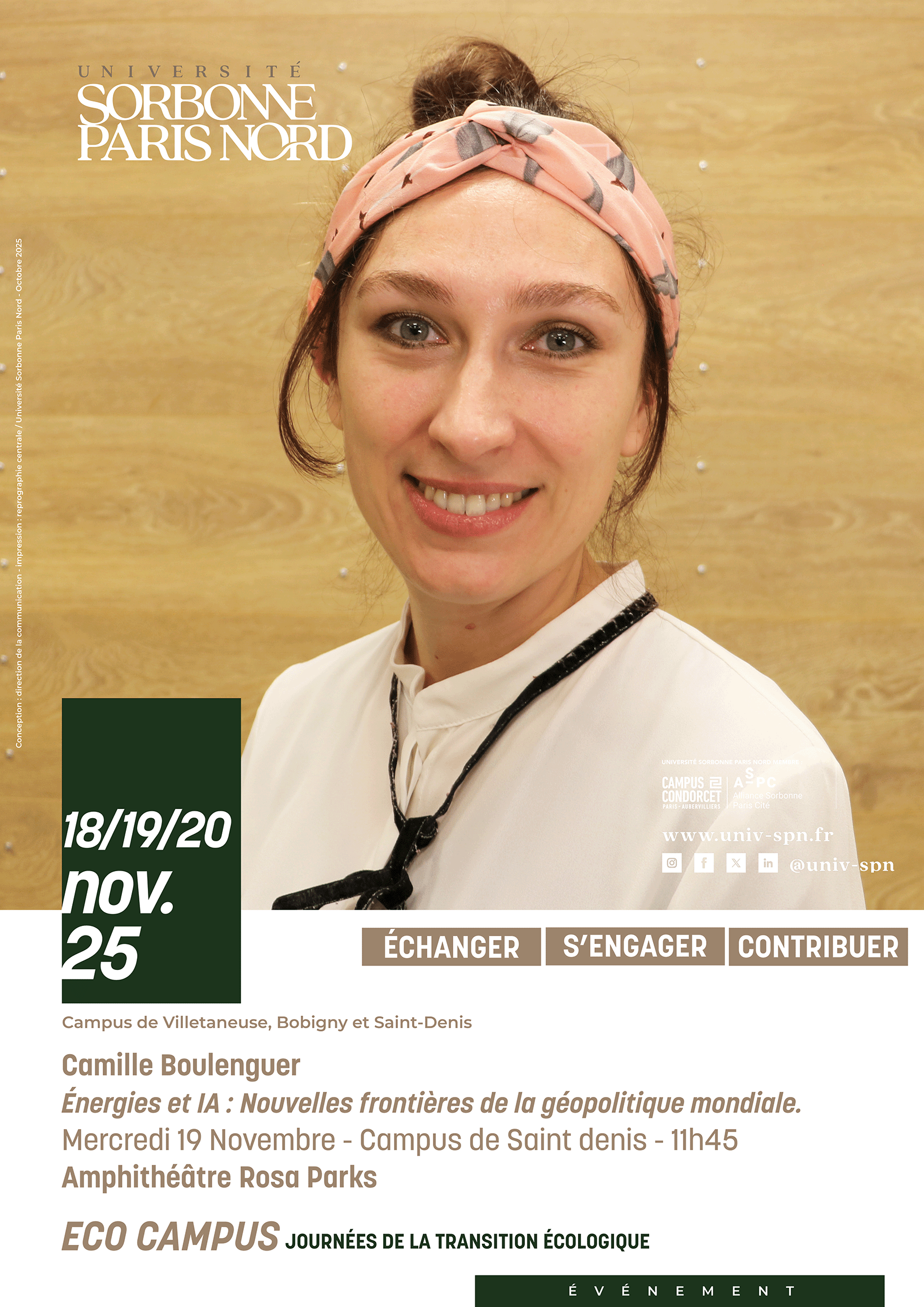 Sorbonne Paris Nord consacre trois journées à un enjeu majeur pour notre avenir collectif : la transition écologique. Un temps fort de réflexion, d’échanges et d’expérimentation ouvert à toute la communauté universitaire — étudiants, personnels et enseignants-chercheurs — pour faire de notre université un acteur engagé de la transformation environnementale.
