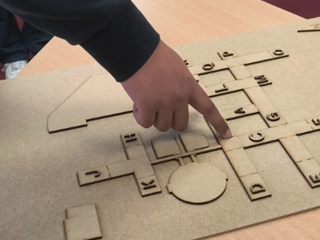 Essentiellement destiné aux personnes en situation de handicap visuel et à mobilité réduite. Cette carte en relief permettrait de mieux se repérer sur le campus, en identifiant les bâtiments avec leur localisation sur le plan, les chemins principaux, les entrées/sorties qui peuvent présenter un obstacle ainsi que les points importants pour les salles de cours et les services généraux.